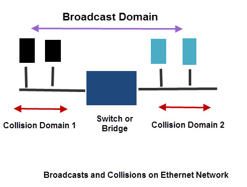 Un dominio di collisione è la sezione di una rete in cui i pacchetti possono entrare in collisione e interferire tra loro. I dispositivi di rete (Hub e switch) che funzionano al livello 2 (livello di collegamento dati) possono creare domini di collisione separati . Anche se bridge e switch dividono una rete in domini di collisione separati , i computer fanno ancora parte dello stesso dominio di trasmissione .