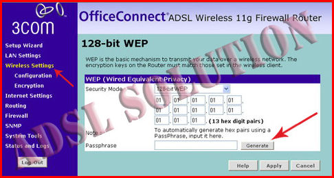3Com Office Connect 3CRWE754G72-A Configurazione crittografia WEP