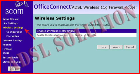 Vai nel menù posto alla sinistra della pagina e clicca su Wireless Setting per abilitare l'interfaccia Wireless come in figur
