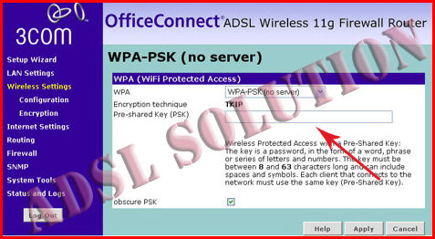 3Com Office Connect 3CRWE754G72-A - CONFIGURAZIONE CRITTOGRAFIA WPA-PSK
