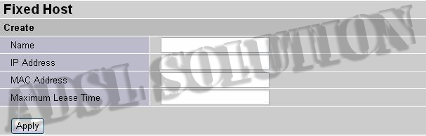 Nella creazione (o meglio aggiunta) di un nuovo Host dovremo ripetere la fase precedente riempendo i campi Name, IP Address, MAC Address, Maximum Lease Time
