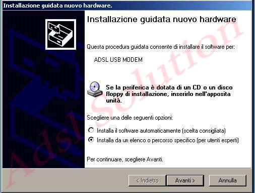 quando Windows si accorgerà del collegamento apparirà una finestra simile a quella riportata in figura: spuntiamo "Installa da un elenco......" e premere "Avanti"