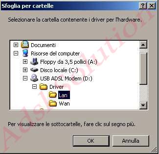 Spunta le voci come nella figura seguente e dove trovi "D:\" clicca sul tasto sfoglia e cerca all'interno del CD d'installazione :\Driver\WAN