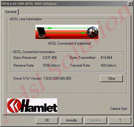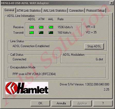L'installazione dei Driver è completata: ora dobbiamo configurare il modem Hamlet HDSL640 USB con i parametri rilasciati dal nostro ISP