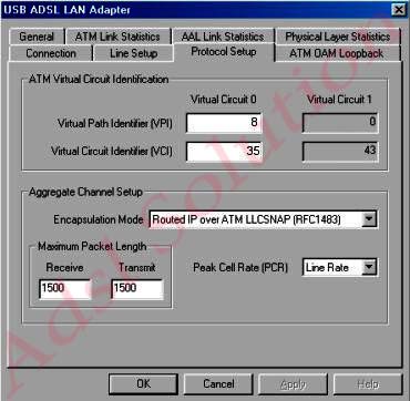 Selezionare “Protocol Setup” e comipare i campi in base ai parametri suggeriti dal proprio Internet Service Provider: “VPI”, “VCI” e “Encapsulation Mode”