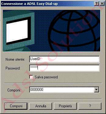 La configurazione è terminata! Clicca sull’icona Accesso ADSL presente su desktop, inserisci "Nome utente" e " Password" forniti dal tuo ISP lasciando invariato il campo "Componi: 0000000"