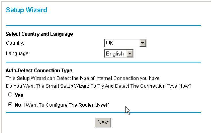 Spuntando la voce "No" si proseguirà con la configurazione configurazione manuale del Netgear DGN2000
