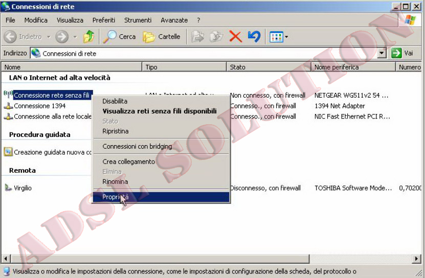 Terminata la configurazione Wi-Fi del Netgear DGN2000 è necessario che il pc individui la nostra rete: