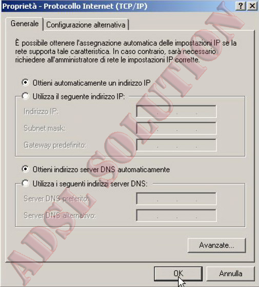 4) Selezionare Protocollo Internet TCP/IP e premere Proprietà: