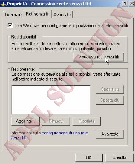 8) Premere sul pulsante “Visualizza reti senza fili”: verranno cercate le reti Wi-Fi disponibili in quel momento