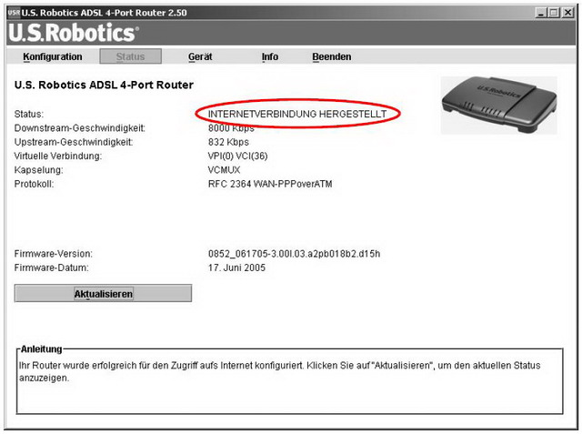U.S.Robotics USR 9107 A per la connessione a Internet è riuscita.
