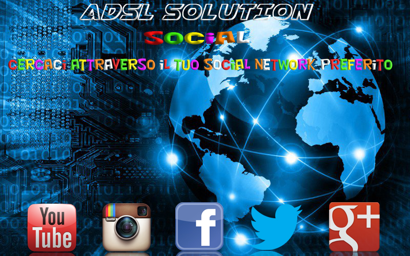 Ok, Adsl Solution è "SOCIAL" già da un pezzo ma la caterva di mail che riceve la redazione con i vostri suggerimenti aveva bisogno di una risposta che potesse accontentare tutti ma soprattutto aveva bisogno di accessi alla partata di tutti anzi, a portata di mano. Così, nella più classica delle riunioni del venerdì (NOTTE!) con lo Staff, si è deciso di dare più spazio al canale SOCIAL attraverso i quattro, almeno per ora, maggiormente frequentati dagli internauti di tutto il mondo: Facebook, Twitter, Google+ e Instagram. Questo perchè, anche se al 98% li usiamo tutti e quattro, abbiamo il nostro "preferito". Siamo tutti impegnati senza neppure sapere il perchè, a far scorrere la bacheca di Facebook o dei suoi "avversari" durante la pausa caffè, dopo cena, al semaforo ecc. Che lo vogliamo o no il social network fa parte della nostra vita e quell' APP che si apre con lo sfioramento di un dito è anche il metodo più veloce che abbiamo per dire la nostra. Oggi siamo presenti in tutti e quattro i maggiori Social Network del pianeta cosichè a voi basti un "CLICK" per interagire direttamente con noi, presentarci le vostre opinioni, le vostre idee, le vostre richieste ma anche le vostre, sempre apprezzate e costruttive critiche.